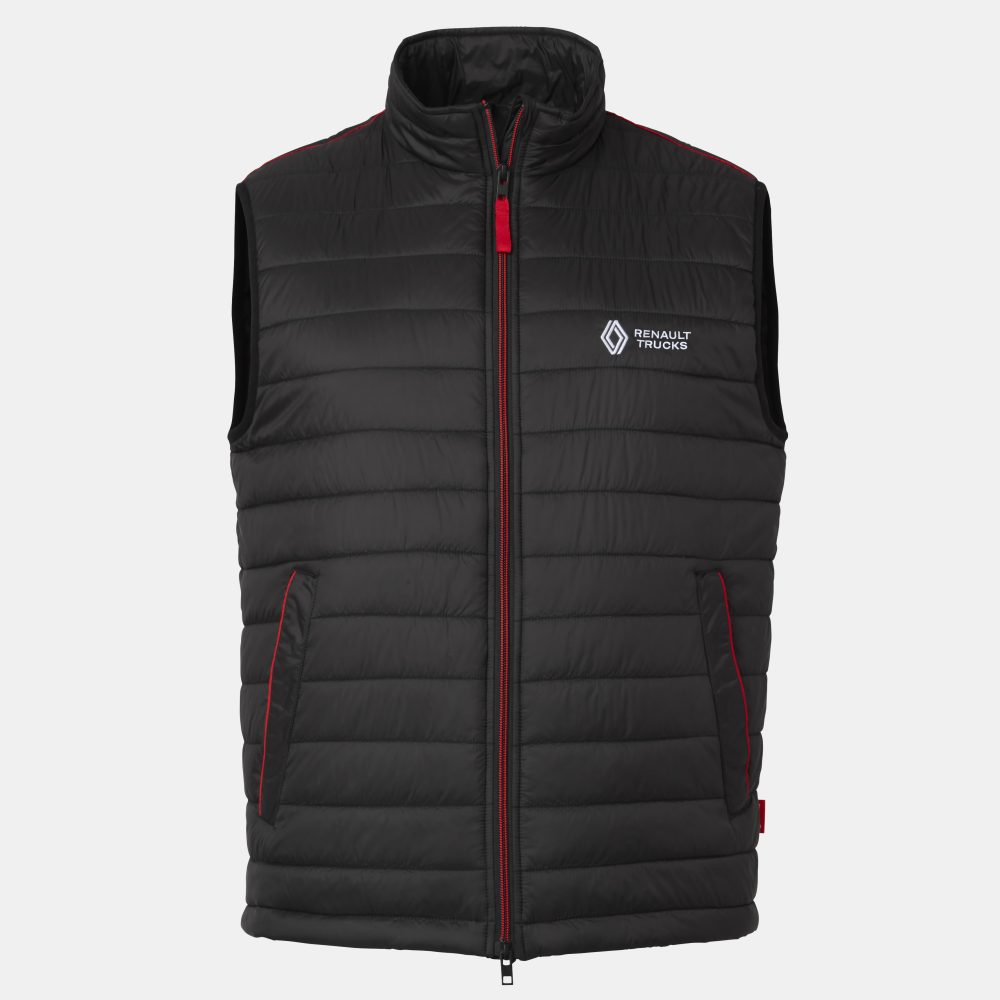 Liivi on suunniteltu suoralle istuvuudelle, ja sen tyyli tihkuu mustaa eleganssia väriä, jota korostavat dynaamiset punaiset putkistot ja vetoketjun yksityiskohdat. Valkoinen kirjailtu Renault Trucks -logo koristaa rinnassa. Kevyt pehmuste varmistaa tarvitsemasi lämmön mukavuudesta tinkimättä.