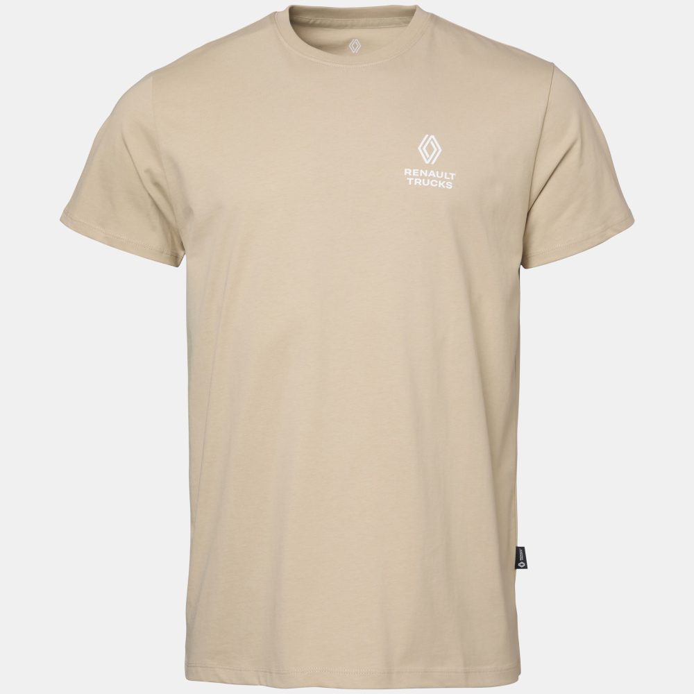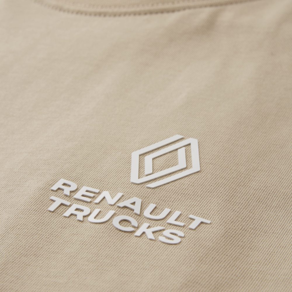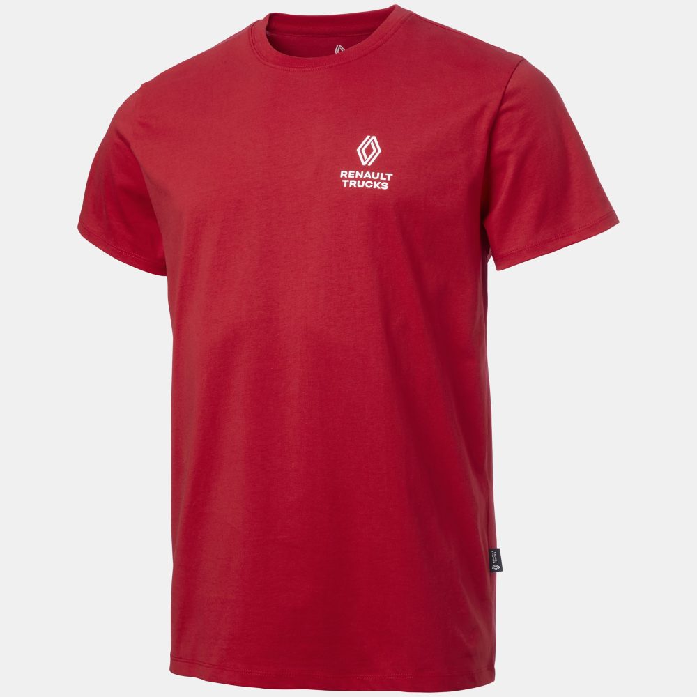 Tämä siisti luomupuuvillasta valmistettu ja (GOTS) -sertifioitu T-paita yhdistää laadun, mukavuuden ja kestävyyden. T-paitaa on saatavana punaisen ja beigen värisenä, paidan vasemmassa rinnassa rohkea 3D-tulostettu Renault Trucks -logo ja takana tyylikäs On the Road -silkkipaino.