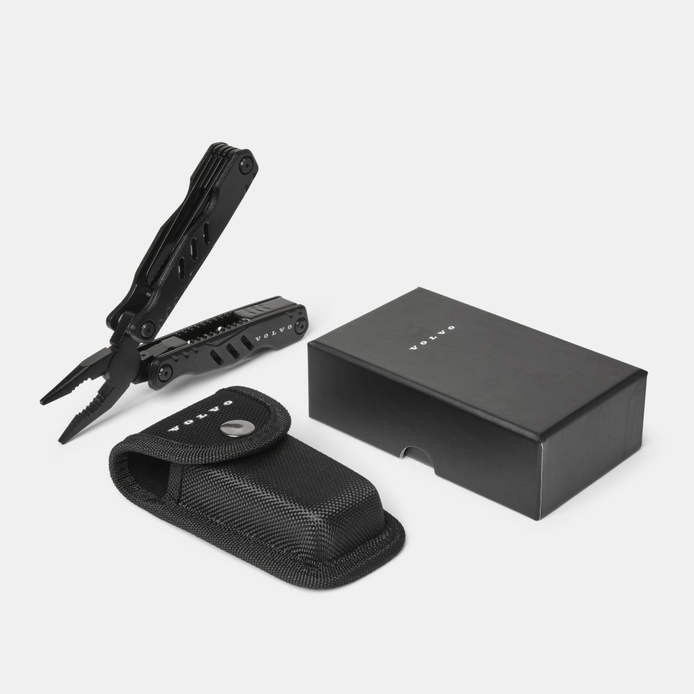 Tässä ruostumattomasta teräksestä ja alumiinista valmistetun monitoimityökalun sisällä on 10 työkalua siististi pakattuna vyöpussiin, jota on kätevä kuljettaa mukanasi aina mihin vain kiinnittämällä sen esim. vyöhön tai reppuun. Se on päällystetty mattamustalla pinnalla ja kaiverrettu Volvon levitetyllä logolla edessä. Toimitetaan merkkituotteessa premium-lahjarasiassa.
