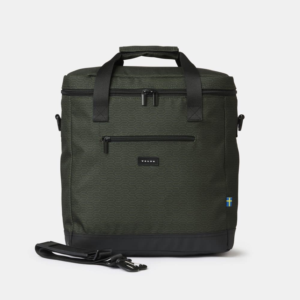 Ulkokäyttöön suunniteltu kylmälaukku pitää ruokasi ja juomasi tuoreina minne tahansa päivä sinut vie. Käteviä yksityiskohtia ovat pienempi vetoketjullinen tasku edessä ja irrotettava olkahihna – ihanteellinen retkille, ulkoiluun tai piknikille. Vihreäksi viimeistelty hienovaraisella säleikön inspiroima kuvio ja huomaamaton Volvo-logo.