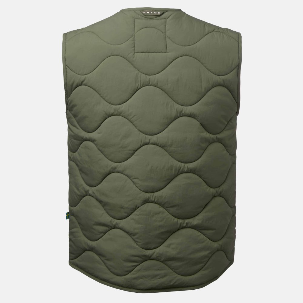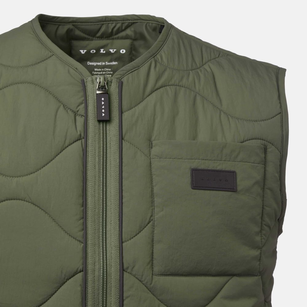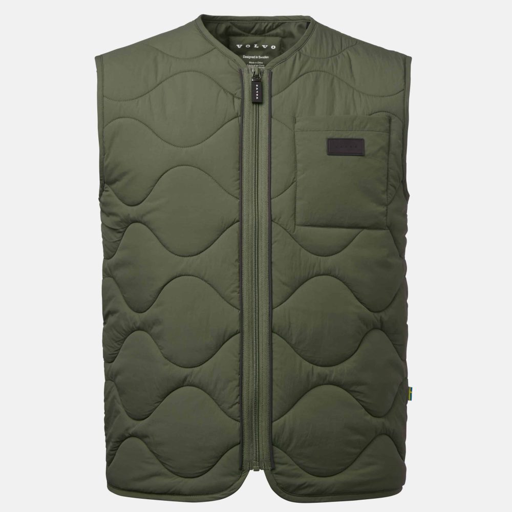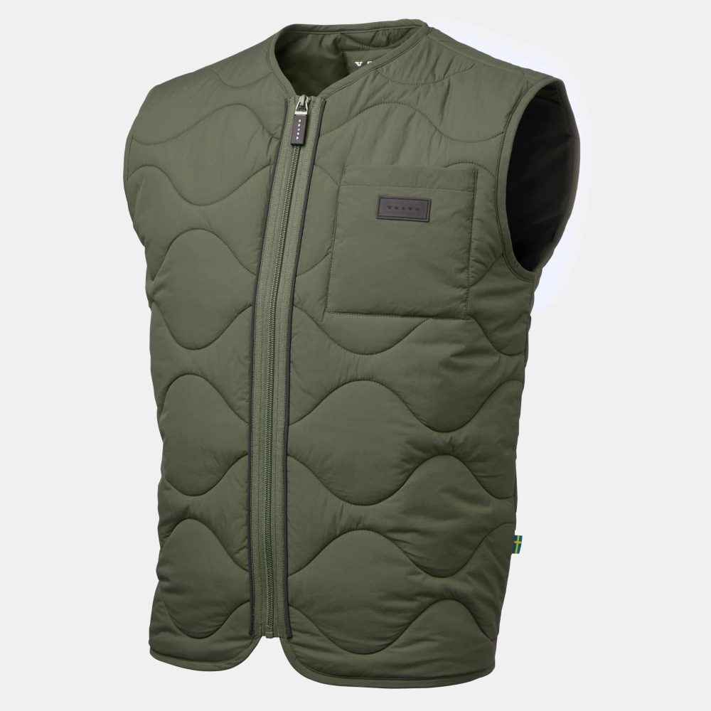 Tämä tyylikkään tummanvihreä pehmustettu liivi on kevyt ja monipuolinen välttämättömyys, joka on täydellinen ulkoiluun tai jokapäiväiseen käyttöön. Heijastavat putket etuvetoketjussa ja heijastava Volvo-tarra rintataskussa tekevät sinut näkyvämmäksi pimeässä.