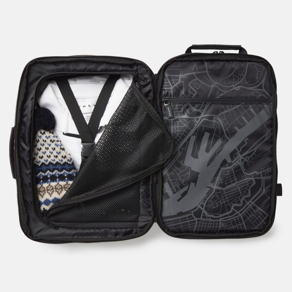 Tilava Volvon matkareppu yhdistää tyylikkään muotoilun älykkääseen toimivuuteen. Siinä on kaksi päälokeroa: toinen, joka on suunniteltu kannettaville tietokoneille (enintään 16") ja toinen lokero, joka tarjoaa useita säilytysratkaisuja hihnalla pitämään tavarasi turvassa. Sisustaa korostaa ainutlaatuinen Göteborgin graafinen karttakuvio, joka juhlii Volvon perintöä.